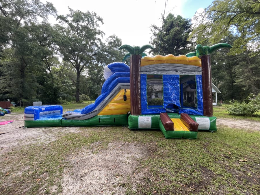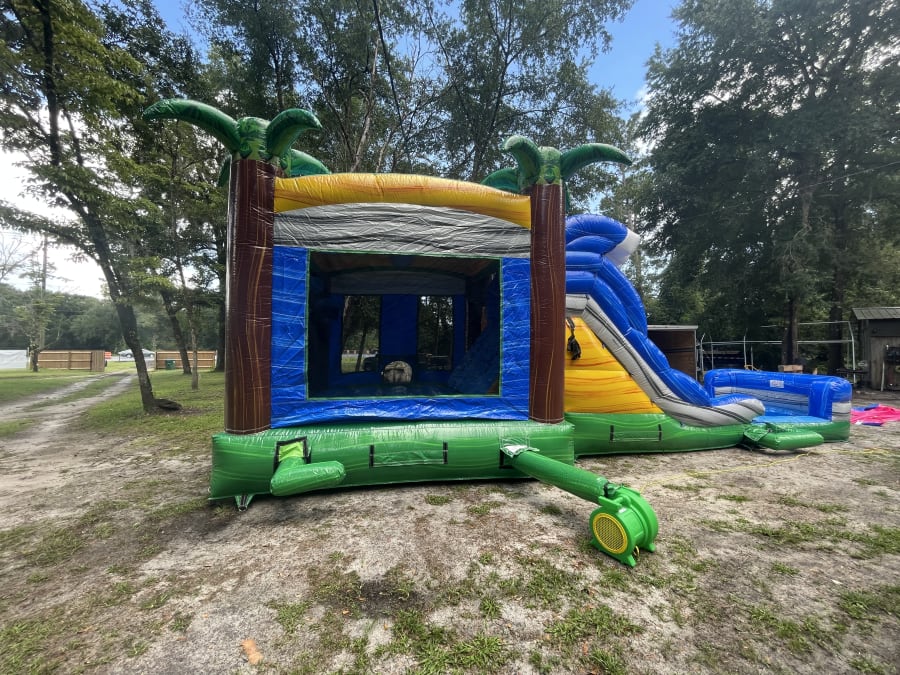 Tropical Wave Super Combo with Pool (Wet) Bounce House Measurements: 33x17x14 Space Required to Setup:38x20x18 Bounce Houses holds until up to 600 pounds Rental - Set Up & Take Down Included