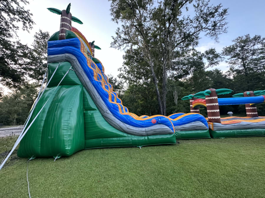 Create lasting memories with the largest inflatable water slide in North Florida! Book the 27' Tiki Plunge with Slip 'N Slide for your next event, and let us help make it the best one yet!