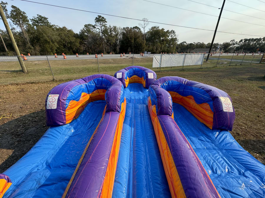 Get ready to experience the rush of our one-of-a-kind Triple Lane Water Slide Rental in Crawfordville, Florida. Prepare for the ultimate aquatic adventure with friends and family as you slide down in style and make a splash!
